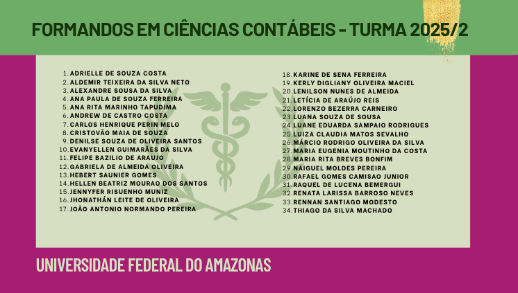 O Departamento de Contabilidade da UFAM tem a honra de enviar ao mercado de Trabalho mais 34 profissionais Contadores.